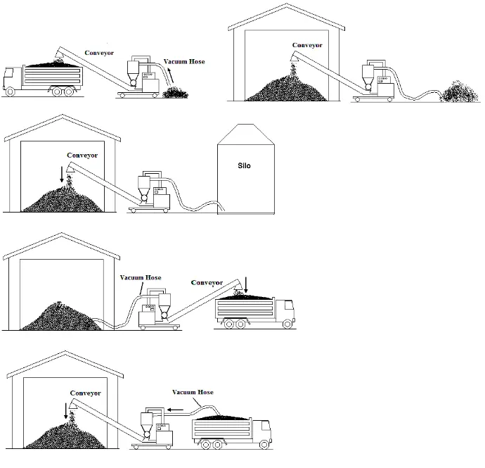 • The mobile system is transported and positioned near the bulk material source or discharge point.