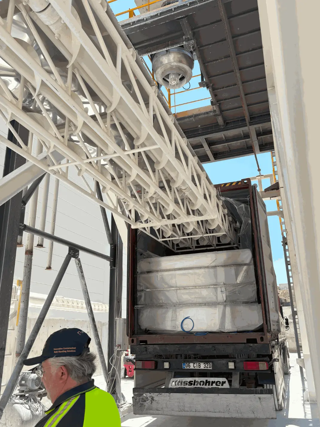 • Container Setup & Positioning: Before filling begins, the container must be securely aligned with the silo outlet to ensure efficient material flow and minimize spillage. Containers used for bulk solid loading are generally lined and reinforced to prevent contamination and maintain product integrity during transport.